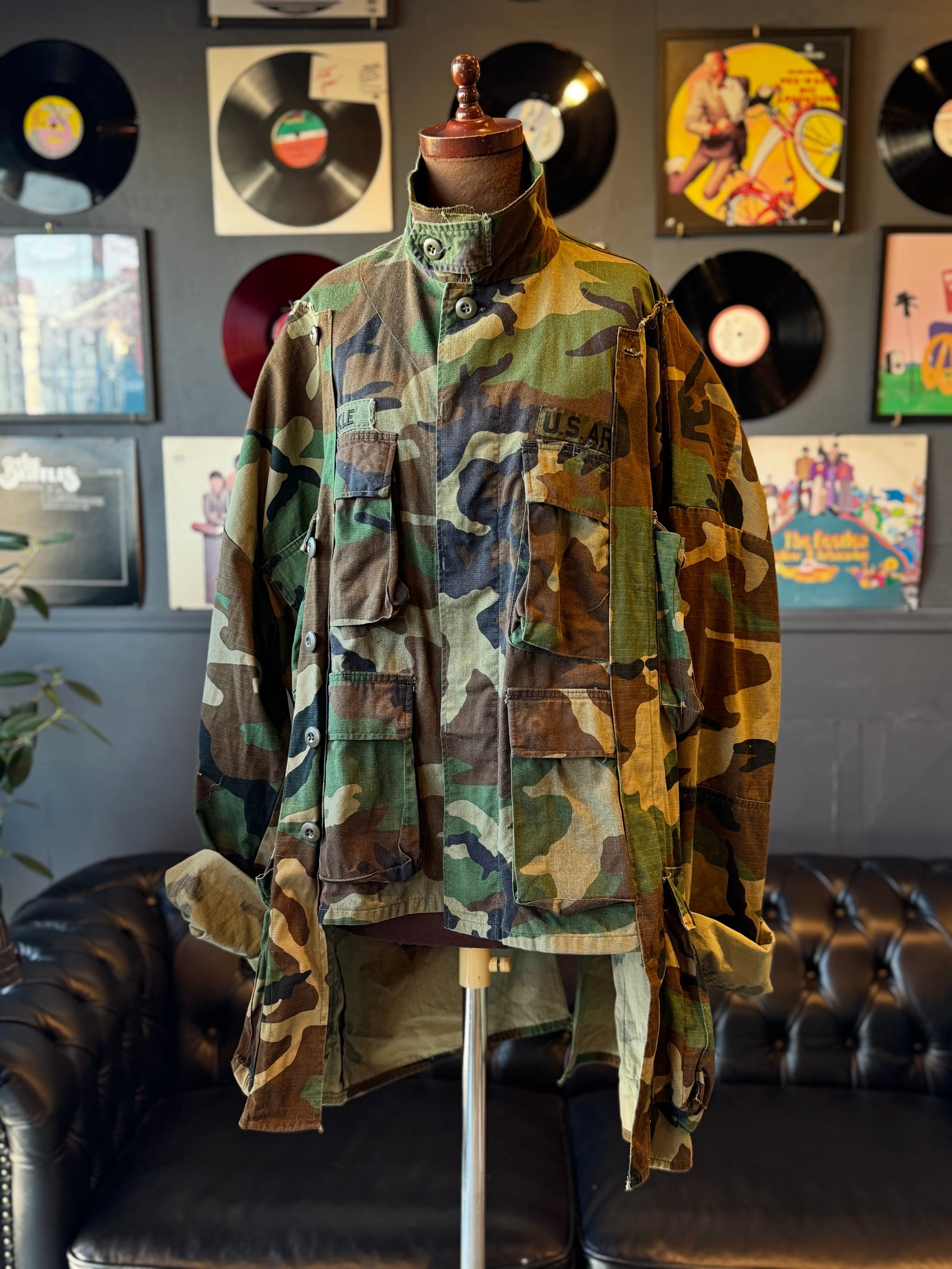 ● ディテール:襟のフリンジ感、袖のカットオフ、ミックスパーツ